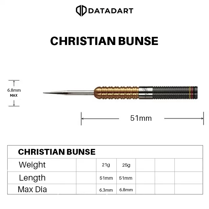 The Christian Bunse 90% signature dart has been designed and endorsed by Christian and manufactured to his exact specification.